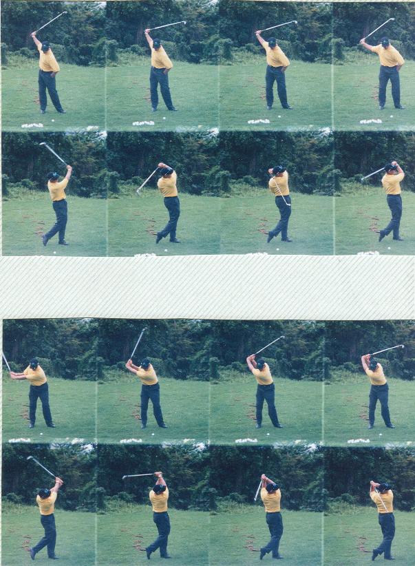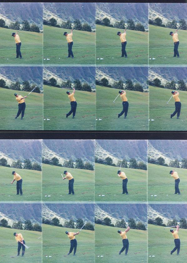 | Compare the sequences above to below and you will notice how similar the one-handed swing is to my two-handed swing. In the sequences that match up the positions are strikingly similar. |