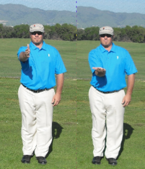 forearms would face downward. You can also think of it as if you had to push something downward with your dominant hand. You can also think of it as replacing