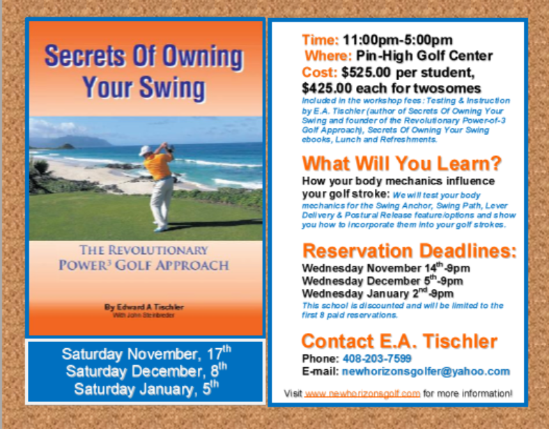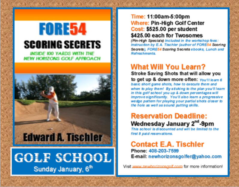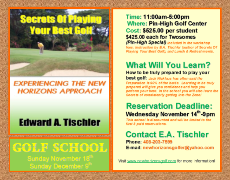 If you have any questions regarding New Horizons Golf Approach please contact EA Tischler at (408)203-7599, or email your questions to EA Tischler newhorizonsgolfer@yahoo.com.